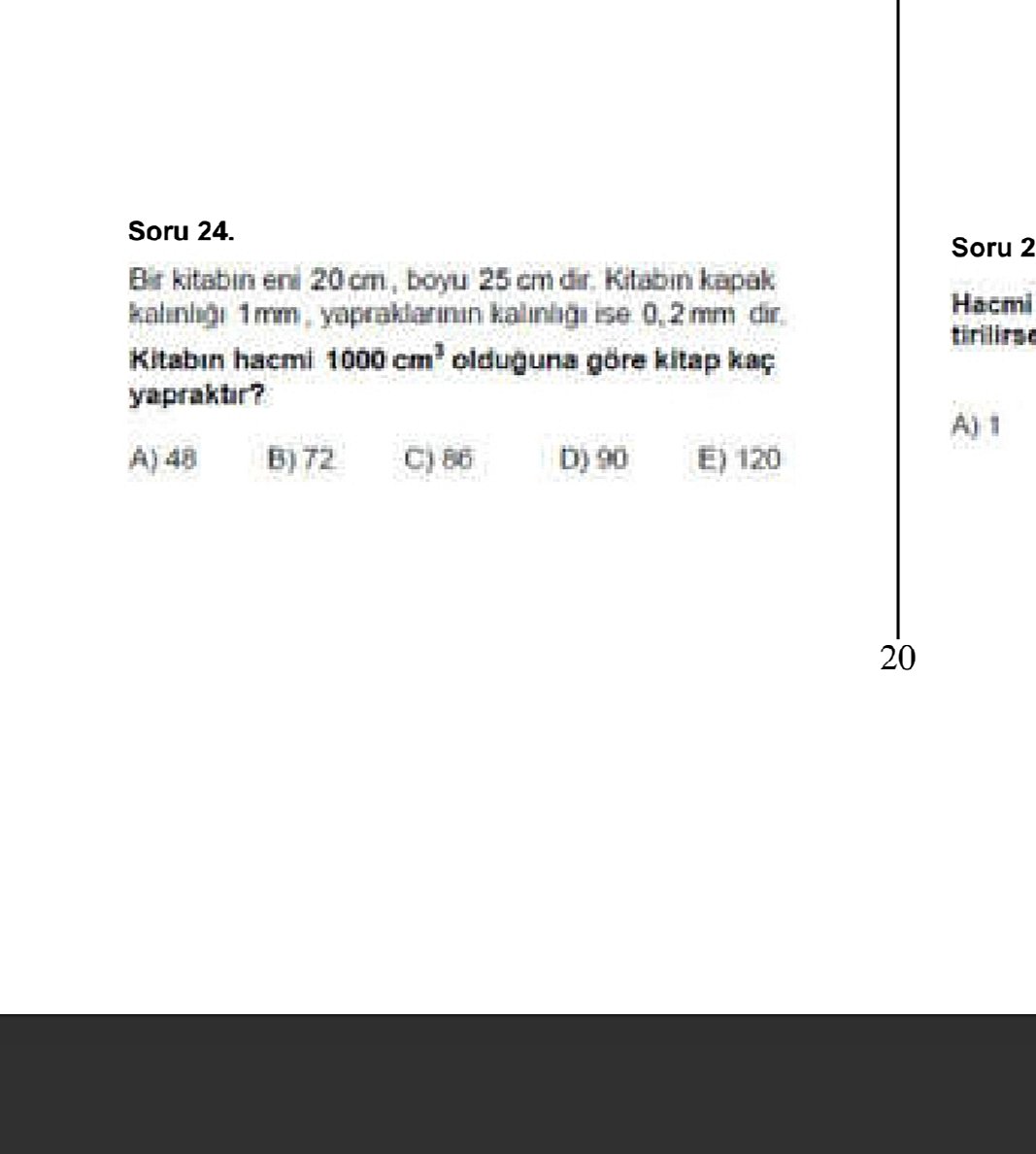 2 cm = ön kapak+arka kapak+ yapraklar olacağından ve soruda kapakların bir adedi yüksekliği 0.1 cm verildiğinden, 2 cm =yapraklar + (2x0.1) kalacaktır.