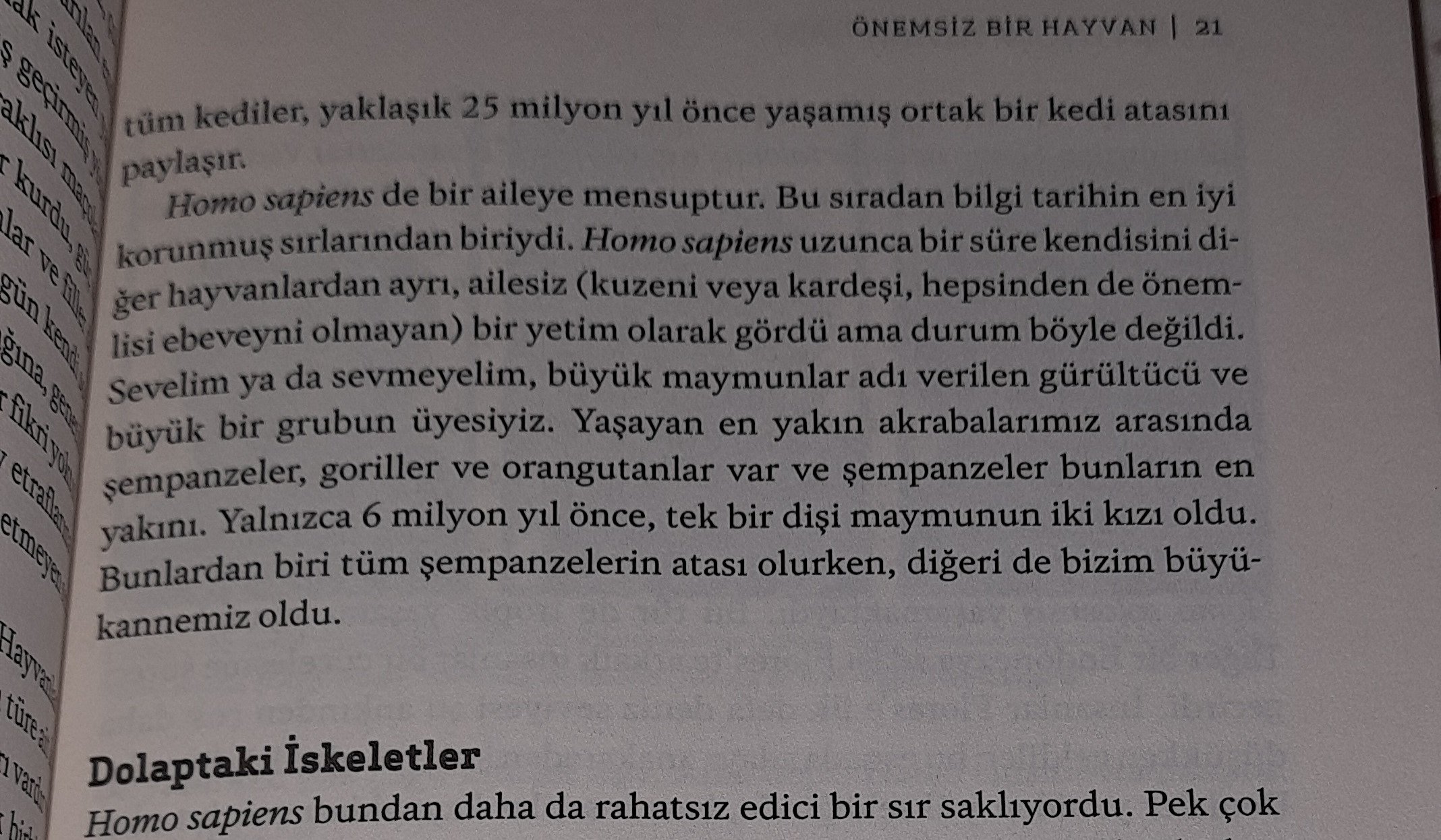 Bilim öğrenmek için okuduğumuz popüler bilim kitaplarındaki hataları ifşa ediyorum . Yanlışım var ise düzeltin. Harari burada tek bir maymunun 2 çocuğu olduğunu ve bunun birisinin şempanzelerin birisinin bizim büyük annemiz olduğunu iddia etmiş . Bu korkunç bir yanlış değil mi ? Lütfen varsa yanlışımı düzeltin