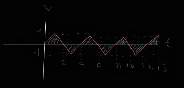 [1]Aslında burada önemli olan "toplam değişim" derken neyi kastettiğiniz önemli. Mesela eğer hız-zaman grafiği için bakarsak evet burada integral size toplam alınan yolu verir. Aslında integralin yapığı şey sadece Negatif ve pozitif alanları toplayıp çıkan Negatif veya pozitif değeri verir. Bir örnek verelim: