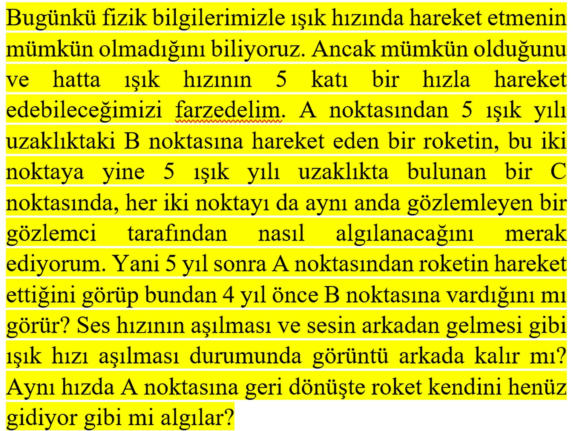Işık hızının 5 katı hıza ulaştığımızı farzedersek bu dışarıdaki bir gözlemci tarafından nasıl algılanır?