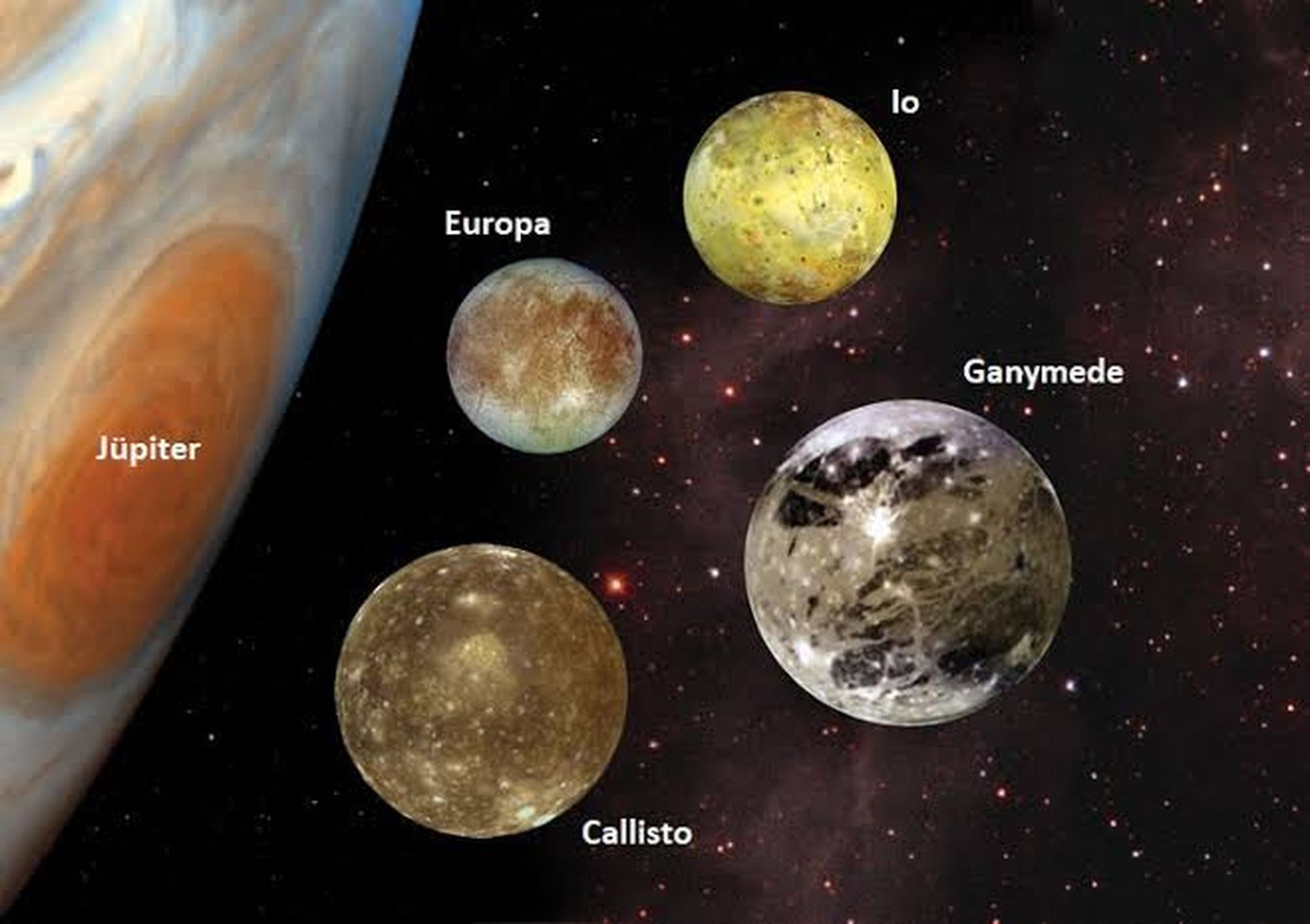 Şahsi tahminim:Jüpiter gezegeni güçlü kütleçekimiyle çevresine çok sayıda uydu getirir. Bu uyduların gezegenin yörüngesinde çarpışmaları olasıdır.Jüpiter'in geçmişte de uyduları vardı. Bu uydular çarpışmış , birleşmiş ve parçalarına ayrılmış olabilir. Sonuç olarak o uydular imha olmuştur ve farklı yörüngedeki uydular dönmeye devam etmiştir.Tıpkı doğal seçilim gibi.Ayrıca birbirlerine uyguladıkları kütleçekim onları birbirlerine yaklastıracak kadar güçlü olamaz çünkü kütleleri birbirine yakındır.