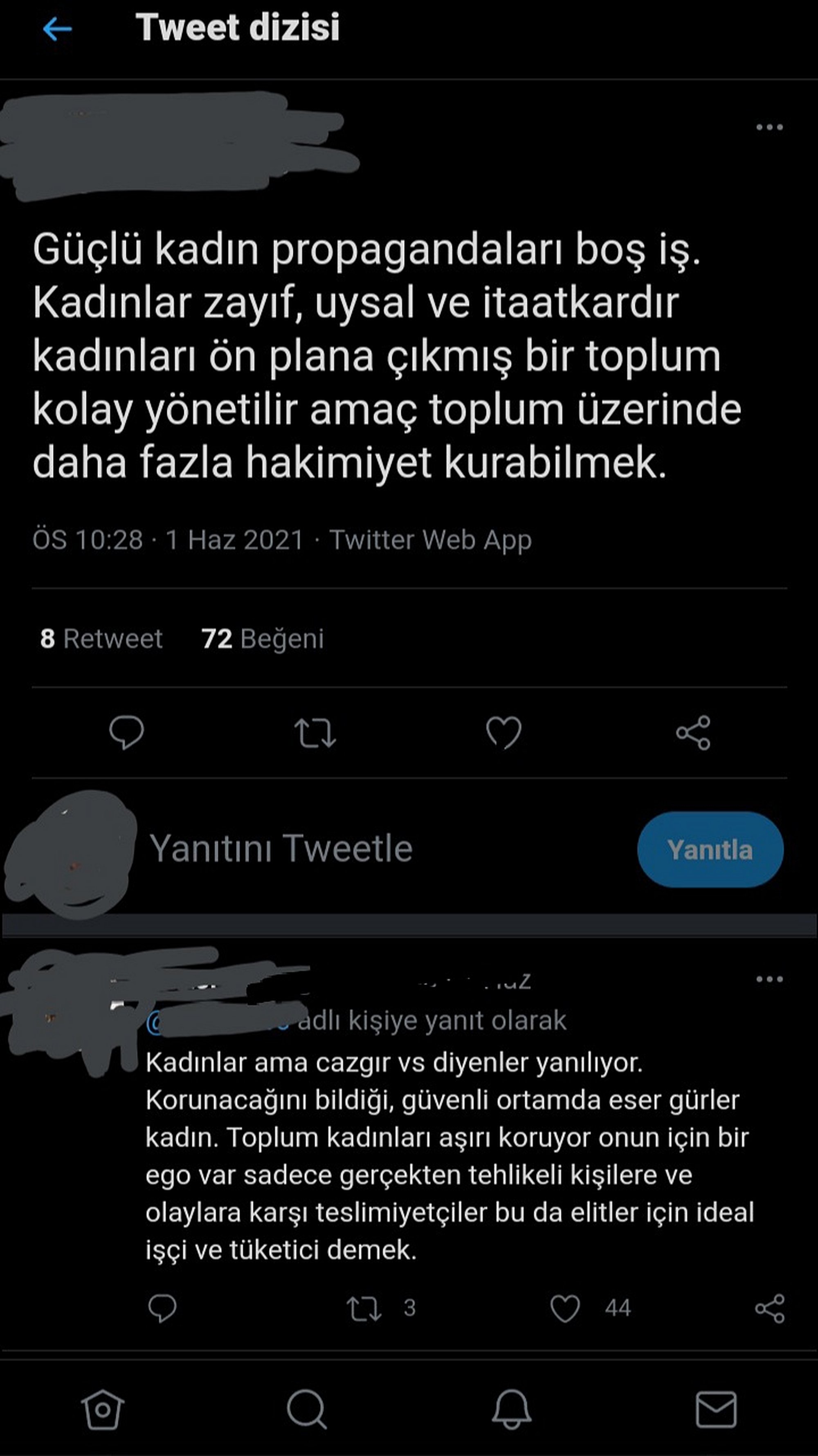Görseldeki gibi çok beyan görüyorum. TED konuşmaları olsun vesaire. Kadının zayıf,itaatkar olduğunu daha düşük IQ'ya sahip olduklarını savunuyorlar. Bu yüzden kadın yöneticiler ne konumda olsa güçlü olamazlar vs vs.