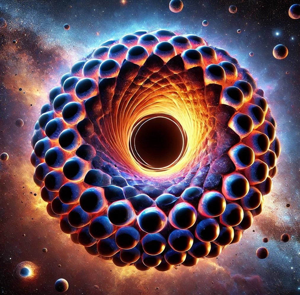 Elimizde yeterli sayıda karadelik olsun.Bunları birbirlerini yutmayacak mükemmel bir şekilde dizseydik oluşan kürenin içinde uzay-zaman dokusu nasıl bir hâl alırdı?