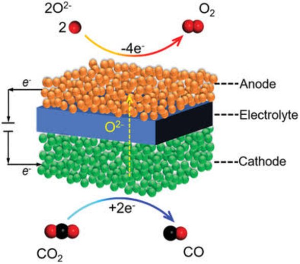 SOEC de gerçekleşen karbondioksit indirgenmesi ile 1 m3 CO (normal şartlar altında) üretmek için 6 ila 8 Kwh elektrik gereklidir.[2]