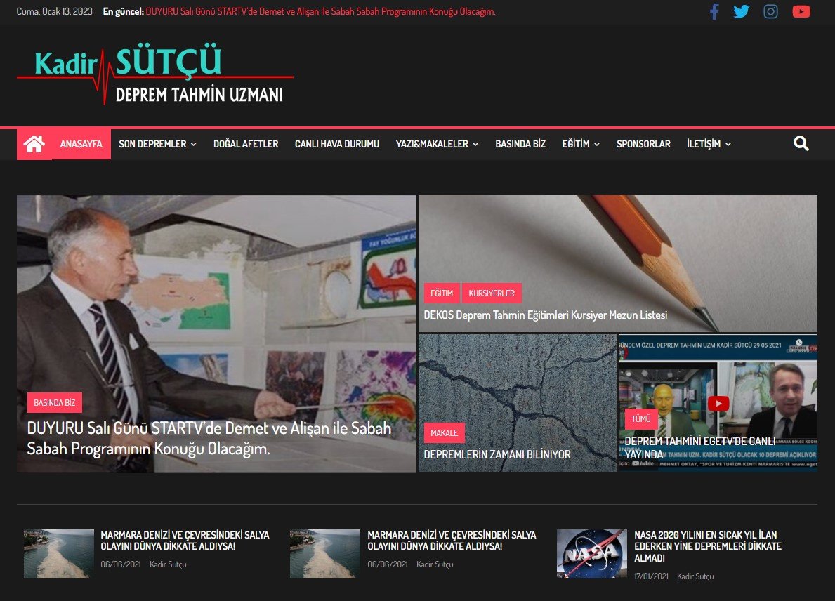 Yaptığım incelemeye göre Kadir Sütçü isimli bu öğretmenin bazı kestirimleri yüksek oranda başarılı. Tabi mevcut akademik altyapısı ve eğitimi sebebiyle de bu metodu başarılı bir şekilde anlatamamakta ve haliyle de dikkate çok fazla alınmamakta. Yaşadığımız coğrafyanın tektonik ve sismik hareketliği yüksek. Ya bu metot gerçekten başarılıysa ?