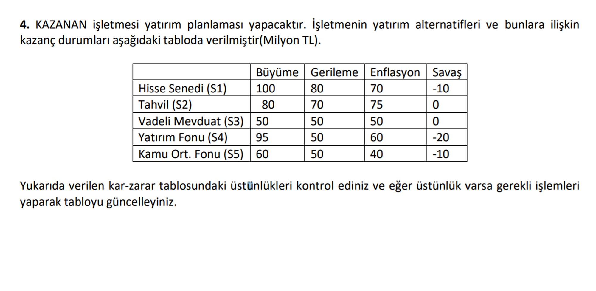 Kar-zarar tablosundaki üstünlük bulma ve işlemleri nelerdir?