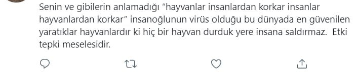 Köpek bir şekilde travmatize olmuş ise saldırgan hale gelmiş olabilir ve travmatize bir hayvanın neyi tehtid kabul edeceğini öngörmemiz biraz zor. Travmatize hayvanların tespit edilip rehabilite edilmeden insanlar ve diğer hayvanlar ile etkileşime sokulması doğru değil. Sokak hayvanlarının da sahipli hayvanların da denetimi ve bunlarla ilgili doğru yasaların çıkartılıp uyum içinde uygulanması toplumsal sağlık açısından çok önemli.