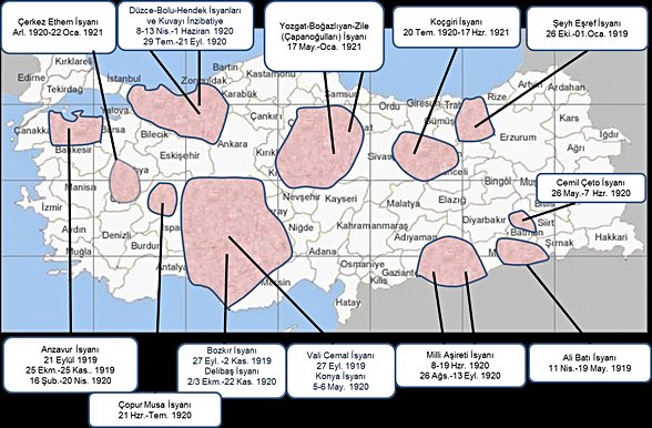 Kurtuluş savaşı sırasında çıkan ayaklanmalar nelerdir?
