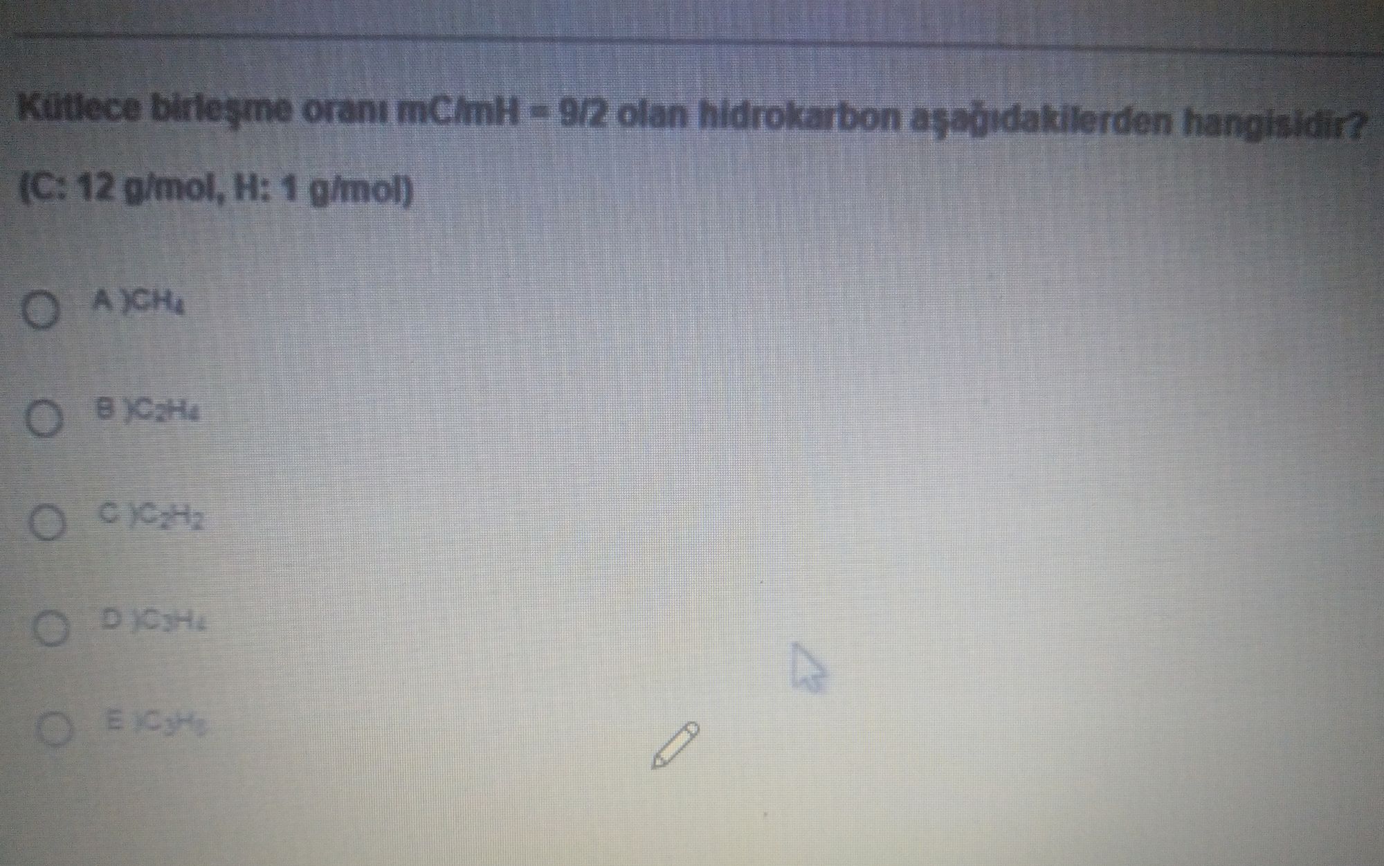 Kütlece birleşme oranı mC / mH = 9 / 2 olan hidrokarbon aşağıdakilerden hangisidir ?