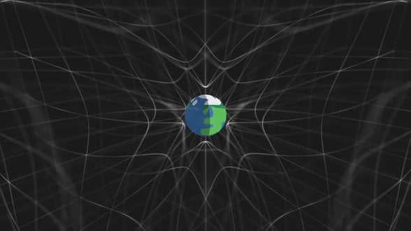 Buna karşılık, kütleli cisimler uzay zaman dokusunu gerçekten de bükerler. Zaten bu analojinin kullanılmasının nedeni, bir çarşafın bükülmesinin uzay-zamanın kütle etkisiyle bükülmesine benzer olmasıdır. Ama çarşaf analojisindeki bir diğer sorun, olayı 2 boyutlu görselleştirmesidir. Gerçekte uzay-zaman dokusu, kütlenin etkisi altında şu şekilde, 3 boyutta birden bükülür (hatta zaman boyutu da kütle etkisiyle büküldüğünden, 4 boyutta birden bükülür ama bunu görselleştirmek daha zor):