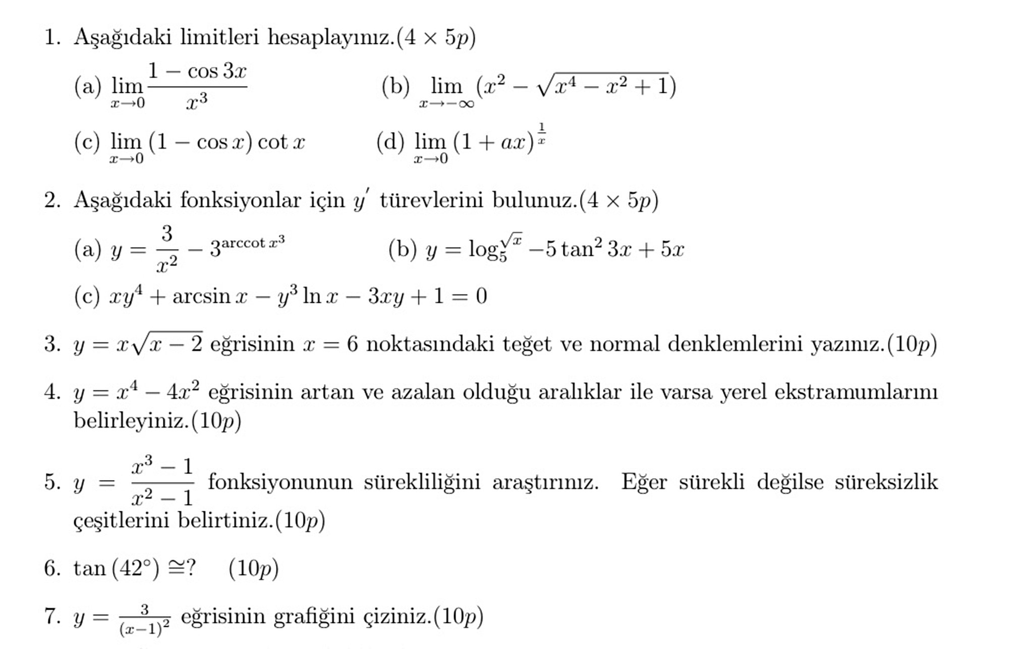Limit ve türev  nedir bu sorular nasıl çözülür?