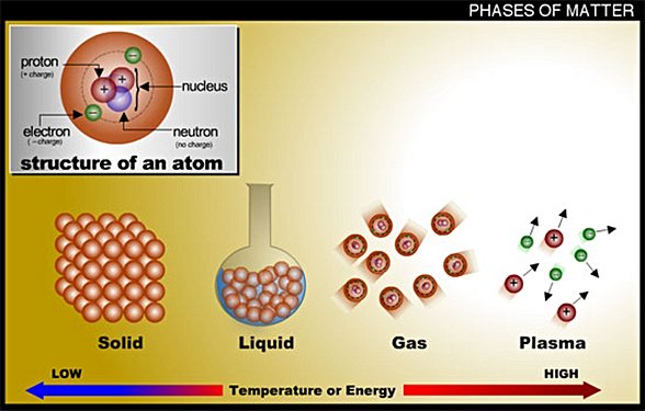 Ekteki resim gibi Katı, sıvı ve gazlarda tanecikli yapısı maddeye göre sıkışıklığı değişiyor bu sıkışıklık plazmada nasıl bir şekilde gözlemliyoruz