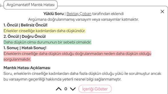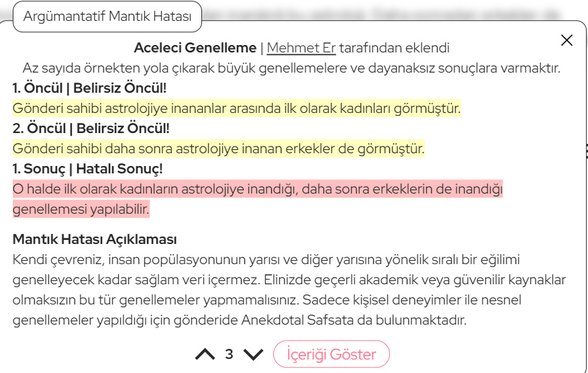 - Mantık hatası raporu kabul edildiğinde raporlanan içerik de bulanıklaştırılacağı için içerikte nelerden bahsedildiğine yönelik açıklayıcı öncül, sonuç veya açıklama yazdığınızdan emin olunuz.