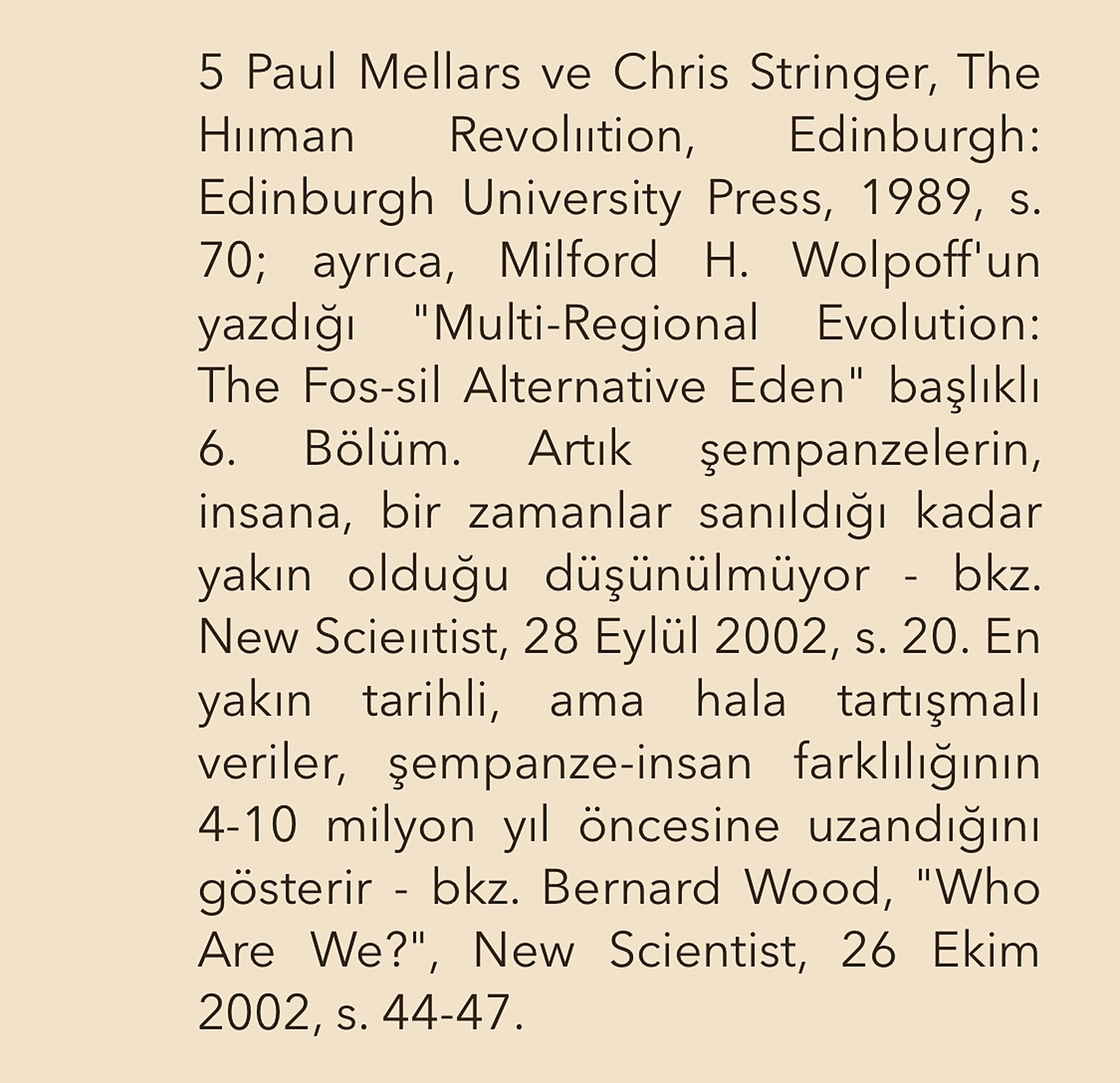 Doğru mu?DNA'daki temel mutasyon oranının, milyon yıl başına % 0,71 olduğu biliniyor. Şempanze DNA'sı ile insan DNA'sı arasındaki bugünkü farklılıktan geriye doğru gittiğimizde, farklılaşma için 6,6 milyon yıl öncesi gibi bir rakama ulaşırız Paul Mellars ve Chris Stringer, The Hııman Revolııtion, Edinburgh: Edinburgh University Press, 1989, s. 70;