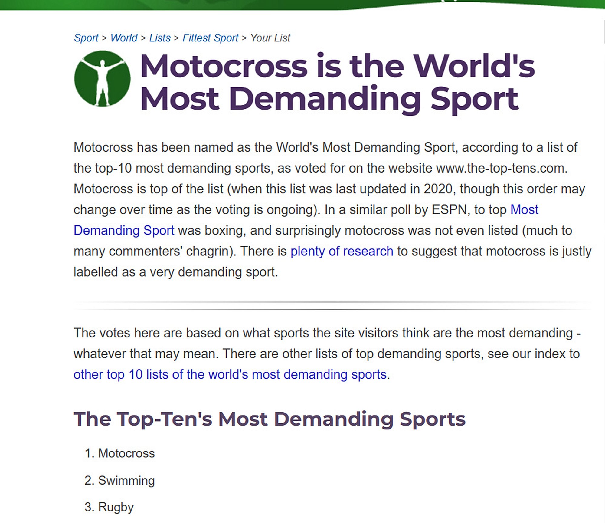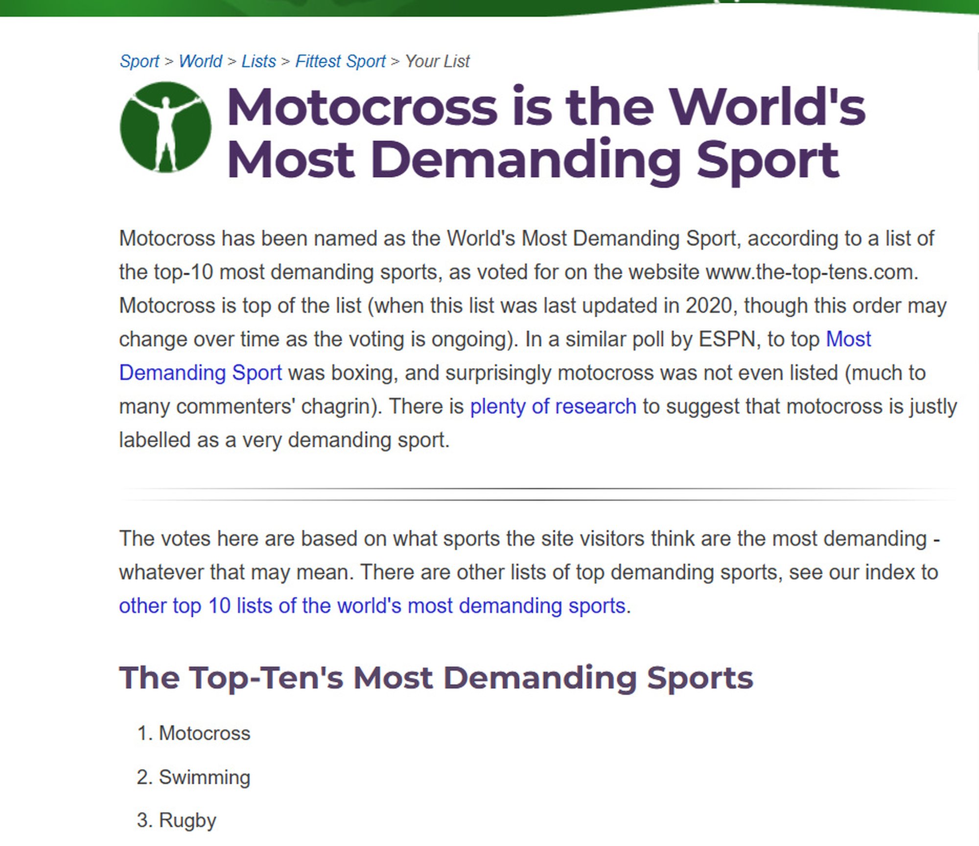 Yabancı kaynaklarda Moto cross ve Boks çıktığını belirtmek isterim.