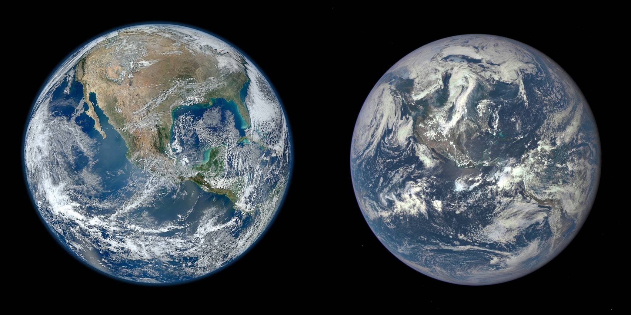 Değerli evrim ağacı üyeleri, NASA'nın 2012 yılında ''Blue Marble'' başlığı ile servis ettiği dünya görüntüsü ile 2015 yılında ''Epic'' başlığı ile servis ettiği dünya görüntüsü kıyaslandığında: Kuzey Amerika'nın 2012'de dünya yüzeyinin yaklaşık 1/4'ünü, 2015'de yaklaşık 1/8'ini kapladığı görülmektedir. Farkın oluşmasındaki neden nedir ?