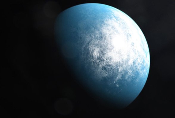 Daha önemlisi, TOI 700 d yeni keşfedilmedi, 2020'de keşfedildi. Geçtiğimiz günlerde keşfedilen gezegen, TOI 700 e. Yukarıdaki gezegenle aynı sistemdeki bir gezegen bu ve yine sanatçı çizimiyle anlatacak olursak, kabaca şöyle gözüküyor (arka planda, uzakta TOI 700 d de gözüküyor):