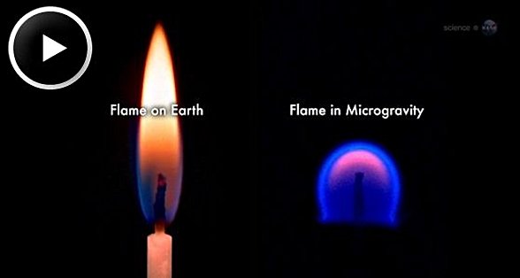 Dolayısıyla eğer bunu yer çekimi etkisini yaşamadığınız bir ortamda, örneğin uluslararası uzay istasyonu (ISS'de) yapacak olursanız alev üçgenimsi şekilli olmaz, aşağıdaki görseldeki gibi olur.
