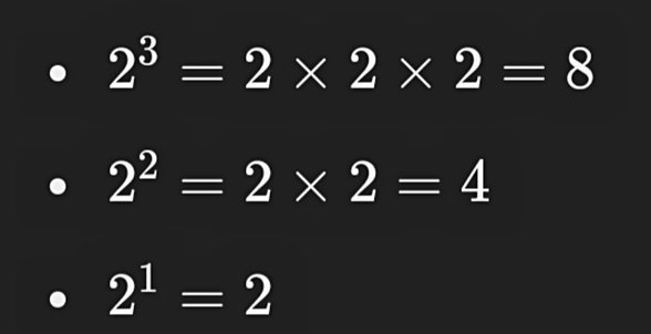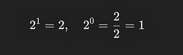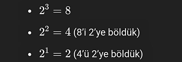 *Şimdi dikkat edersek, her seferinde üssü 1 azalttığımızda, sonuç bir önceki sonucun yarısı oluyor. Yani: