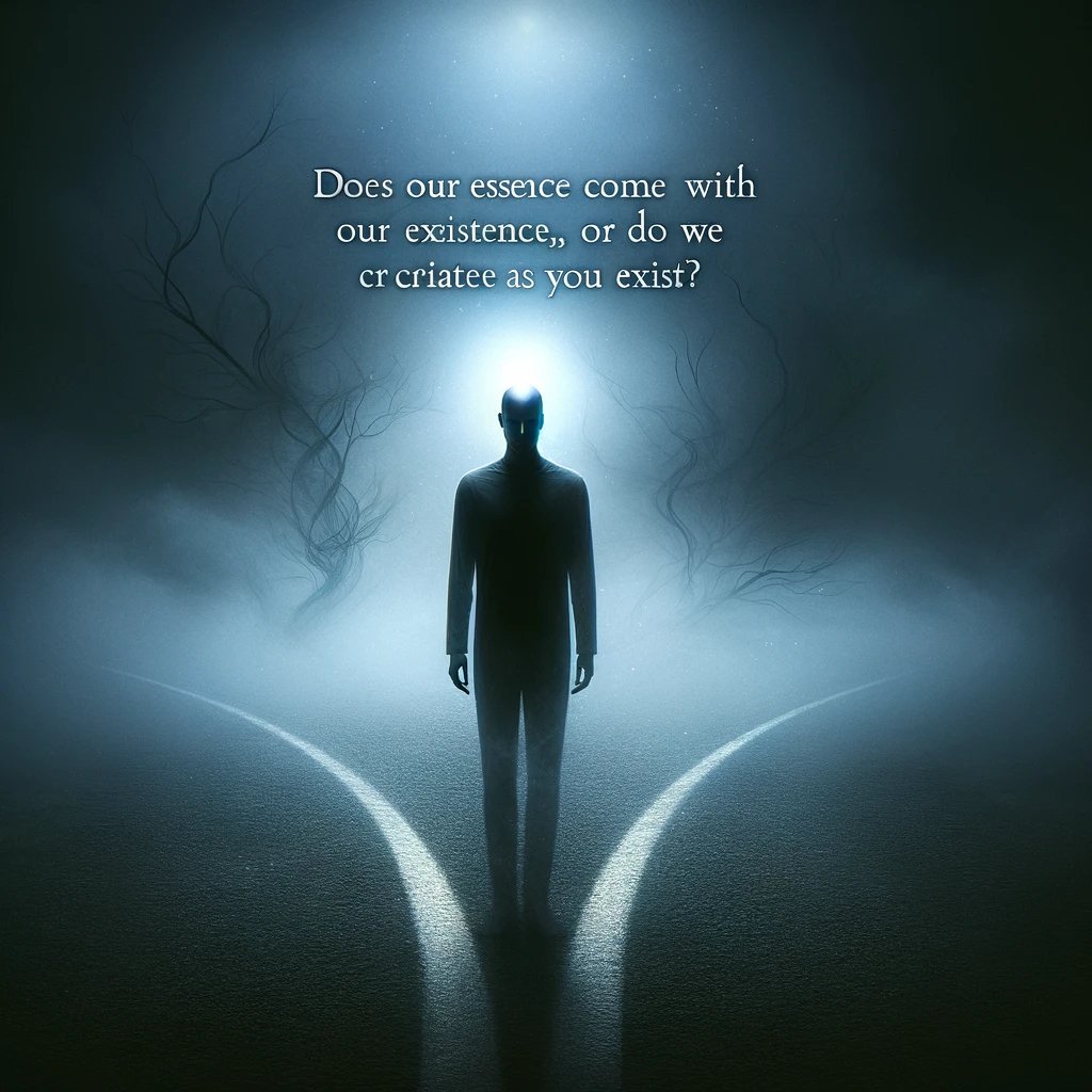 Bu varoluşçuların bile tam anlamıyla çözemediği bir mesele. Sartre der ki, "Varoluş özden önce gelir." Yani biz önce var oluruz, sonra özümüzü yaratırız. Ama mesela Platon gibi düşünürler, öz zaten vardır, biz sadece ona ulaşmaya çalışırız. Derler peki ya sizin düşünceleriniz neler?