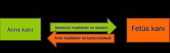 Atıkların ve besin maddelerinin anne ve fetal kan arasındaki değişimi, kılcal damarlar adı verilen küçük kan damarlarının duvarlarından difüzyonla gerçekleşir. Anne ve fetüsün kan hücreleri asla karışmaz, bunun yerine plasenta zarı tarafından ayrı kalır. (diğer bir deyişle plasenta membranı) Aşağıya koyduğum görselden plasenta yapısının ayrıntılı çizimini görebilirsiniz.