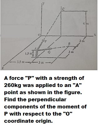 P’nin “O” koordinat başlangıcına göre momentinin dik bileşenlerini bulabilir misiniz?