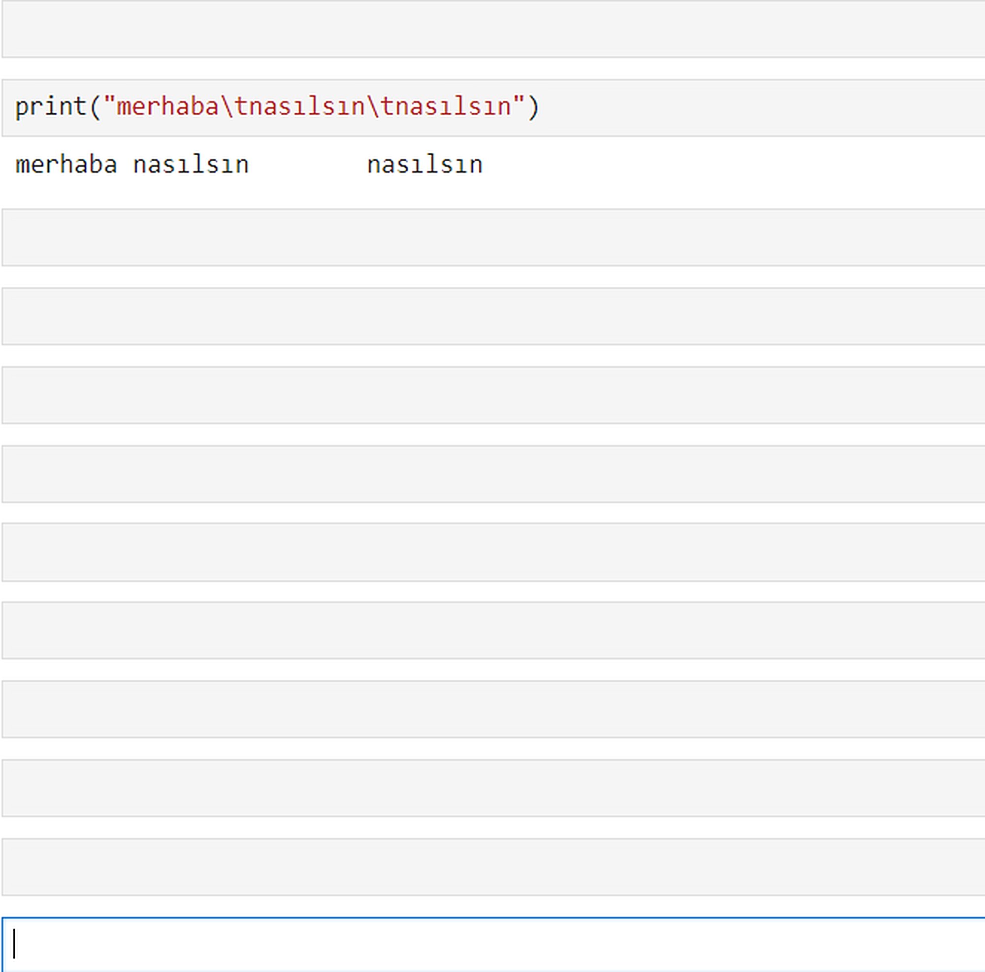 Print fonksiyonunu kullanırken \t karakteri ilk başta çalışmıyor bunun sebebi nedir?