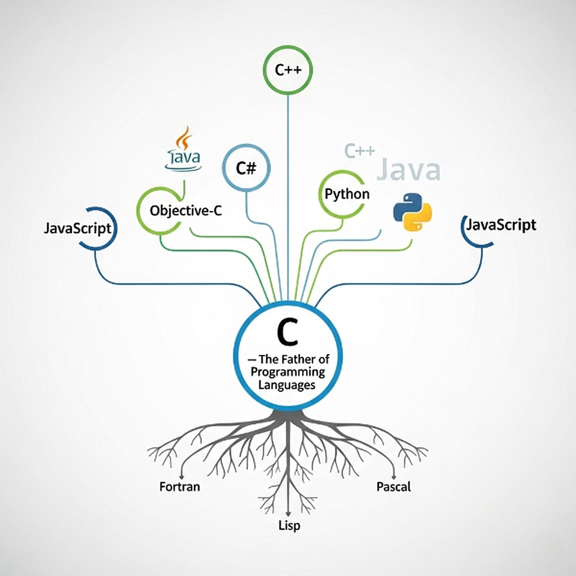 Ama bu sorunun cevabı tek bir "baba"dan çok, işlev bozukluğu olan bir aile ağacına benziyor. Eğer ille de tüm dillerin DNA'sında izi bulunan bir "büyükbaba" arıyorsak, bu onur en çok ALGOL'a (Algorithmic Language) aittir.[1] Çoğu modern imperatif dilin kullandığı blok yapısı (begin/end ya da {}), lexical scope (değişkenlerin kendi blokları içinde geçerli olması) gibi temel paradigmaları ALGOL icat etmiştir. C, Pascal, Java, C#, Python gibi dillerin hepsi, aslında ALGOL'un bu yapısal iskeletinin üzerine inşa edilmiş sentaktik varyasyonlardır. Yani ALGOL, o kimsenin partilerde konuşmadığı ama aslında tüm havalı fikirleri bulan dahi ve biraz da suratsız akraba gibidir. Ondan sonra sahneye C çıkmış, ALGOL'un teorik zarafetini alıp üzerine biraz "pointer aritmetiği" ve "doğrudan bellek yönetimi" gibi tehlikeli ama güçlü özellikler ekleyerek işi bitirmiştir.