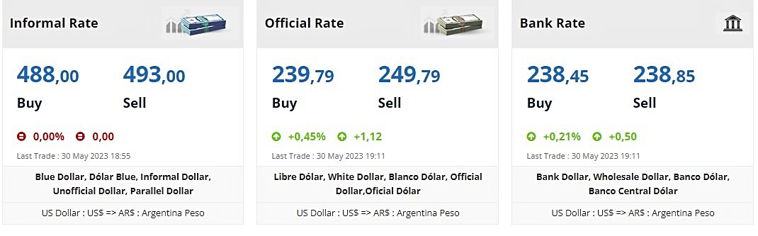 Para piyasalarının ve sermayenin [1]suni kontrolü, reel piyasa ile bankacılık sistemindeki kur değeri arasında fark oluşturur. Arjantin'de yaşanan durum bundan ibarettir. Bankacılık sisteminde kur düşük, reel piyasada ise yüksektir, aradaki ayrımı "blue dollar" olarak isimlendirmişler.