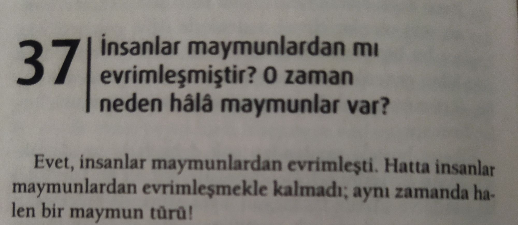Tüm Reklamları Kapatİşin özü şudur: İnsan; maymunlardan evrimleşmiştir, diğer maymunlarla ortak ataları vardır ve şu anda hâlen maymunlar olarak bilinen Simiiformes infratakımının üyesi olan, yani maymun olan bir türdür.