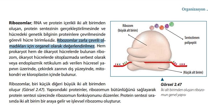 2024-2025 yılı itibarıyla lise ders kitaplarında ribozom artık organel olarak kabul edilmiyor. Bunun sebebi nedir? Çoğu internet sitesinde (Wikipedia vb.) ve Evrim Ağacı'ndaki yazılar da dahil olmak üzere birçok yazıda ribozom organel olarak kabul ediliyor. Bu bilgi karmaşıklığının sebebi nedir?