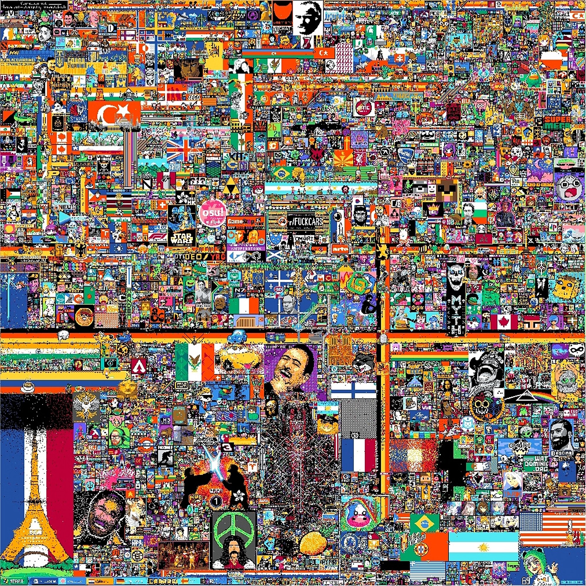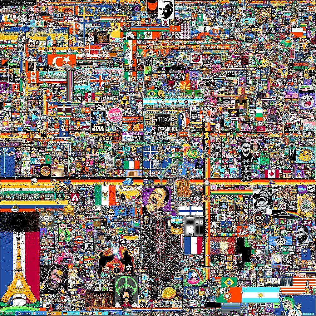 Katılımcıların kendilerini ulusal kimlikleri üzerinden ifade etmeleri eylemin sanatsal içeriğini baltalıyor. Çoğunluk bayrağını döşeyip kendi ülkesinin neyle tanınmış olduğunu ikonlarla göstermiş. Oysa Star Wars'tan akıllarda kalan sahne olsun, klasik tablolar olsun daha anlamlıydı. Bununla birlikte klasik tabloların birebir piksel arta geçirilmesi pekala bir yazılımla da halledilebilir birşey. Bu anlamda "void" gibi eserlere adeta bir kutu dolusu boya döken ve kanvası abstraktlaştıran gruplar en klasıydı. XQC'nin ellerine sağlık. Asıl sanat insanlar planından, programından saptığında ortaya çıkmaya başladı. Tabi ki sonunda beyaza mahkum kalıp improvozasyona dönüşen sonu etkinliğn en güzel kısmıydı kanımca.