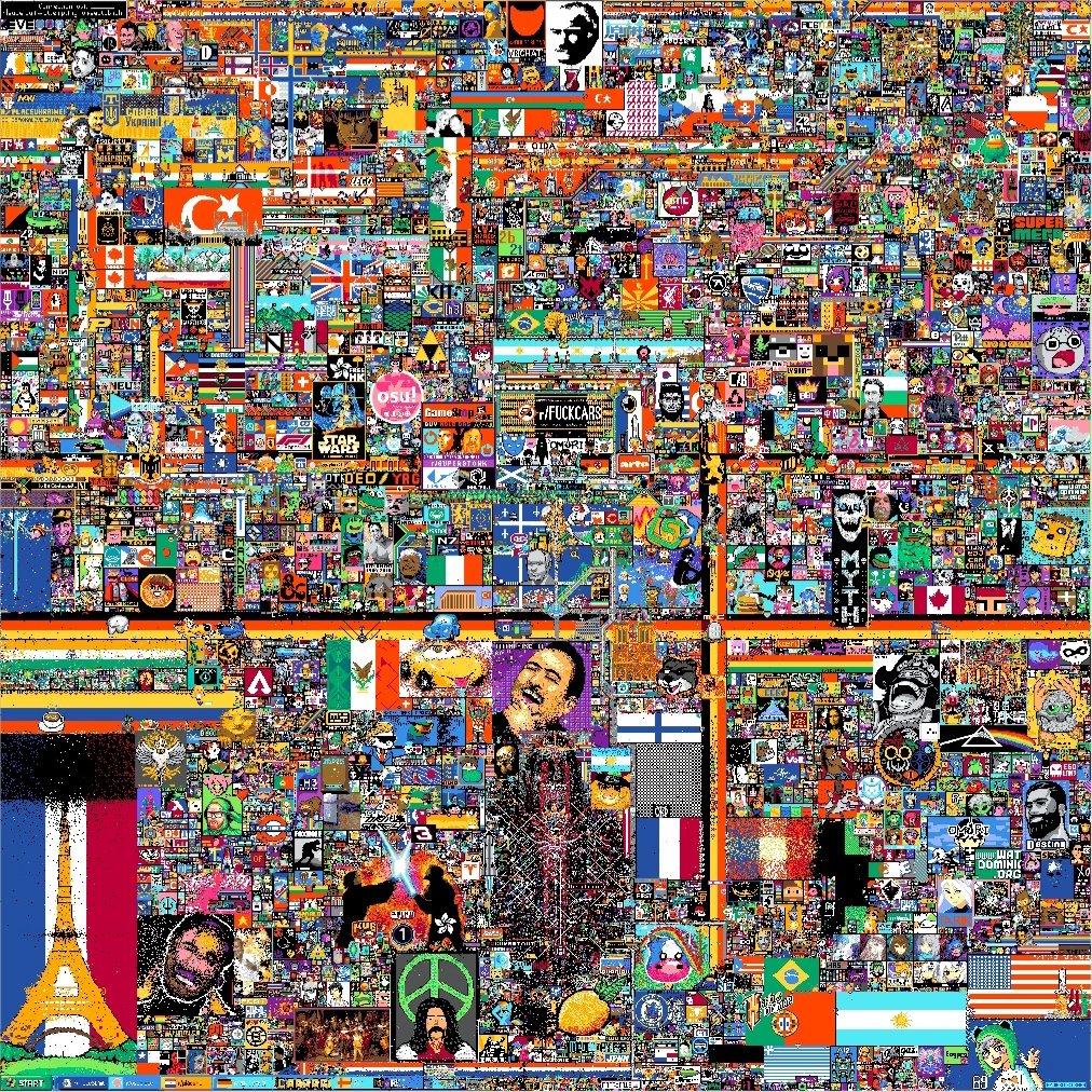 Katılımcıların kendilerini ulusal kimlikleri üzerinden ifade etmeleri eylemin sanatsal içeriğini baltalıyor. Çoğunluk bayrağını döşeyip kendi ülkesinin neyle tanınmış olduğunu ikonlarla göstermiş. Oysa Star Wars'tan akıllarda kalan sahne olsun, klasik tablolar olsun daha anlamlıydı. Bununla birlikte klasik tabloların birebir piksel arta geçirilmesi pekala bir yazılımla da halledilebilir birşey. Bu anlamda "void" gibi eserlere adeta bir kutu dolusu boya döken ve kanvası abstraktlaştıran gruplar en klasıydı. XQC'nin ellerine sağlık. Asıl sanat insanlar planından, programından saptığında ortaya çıkmaya başladı. Tabi ki sonunda beyaza mahkum kalıp improvozasyona dönüşen sonu etkinliğn en güzel kısmıydı kanımca.