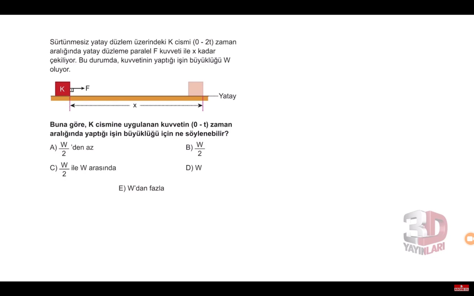Bu durumda cisim x in 1/4 kadar yol almıştır. Eğer ki x in tamamında yapılan iş W ise bu durumda yapılan iş W/4 olur çünkü: