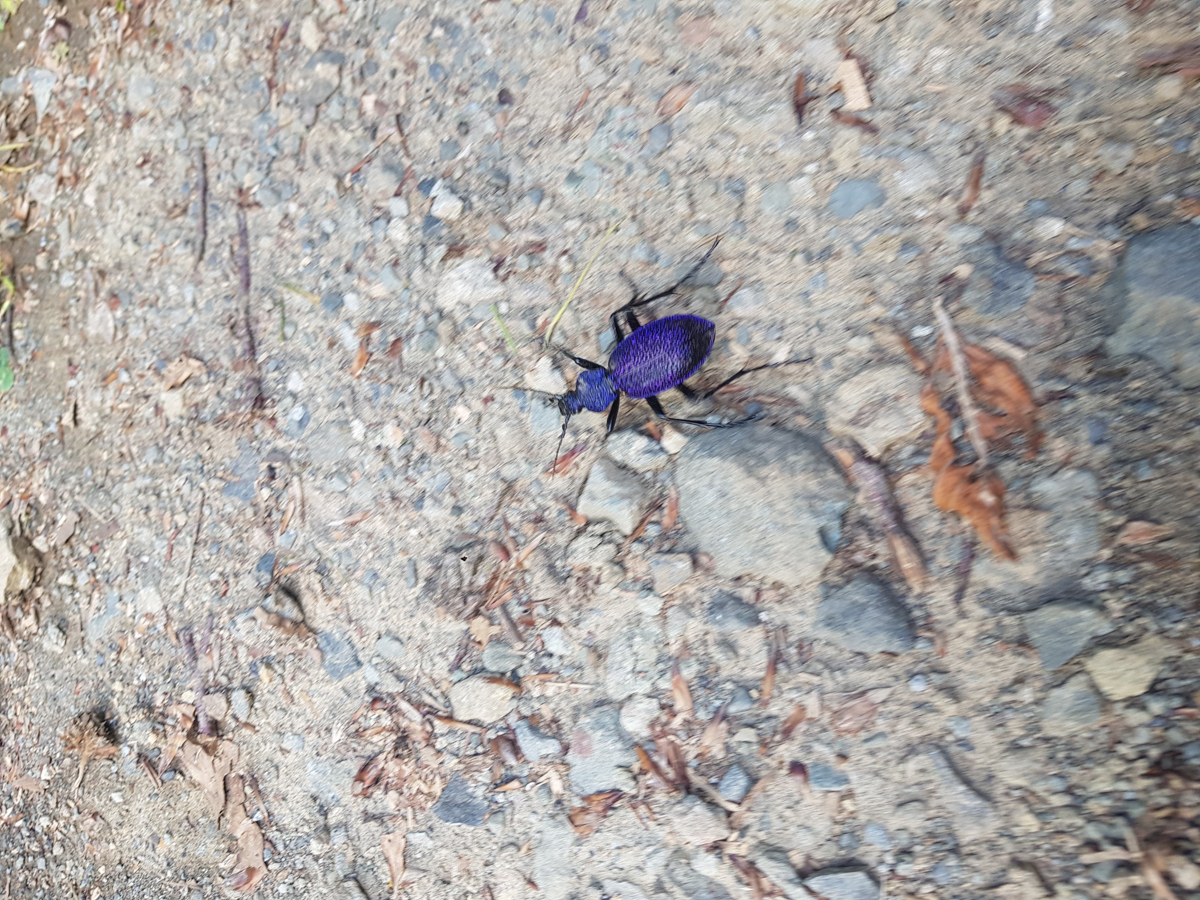 Bunun ismi menekşe karafatma (Carabus scabrosus), 5 santimetre uzunluğa ve 3 santimetre genişliğe erişebilen bir böcek türüdür. Bu gözlemde, mavili tonlarda karşıma çıkmasına rağmen, üst kabuk rengi kızıl-kahve tonlarından siyaha kadar çeşitlilik gösterebilir. Alt kısmı ise siyahtır. Pronotum dar, zayıf kalp şeklinde ve uzun arka köşelere sahiptir. Üst çeneler dar ve içe doğru bükülür. Evrim ağacında böcek hakkında ayrılı bir yazıyı buradan okuyabilirsin.[1]
