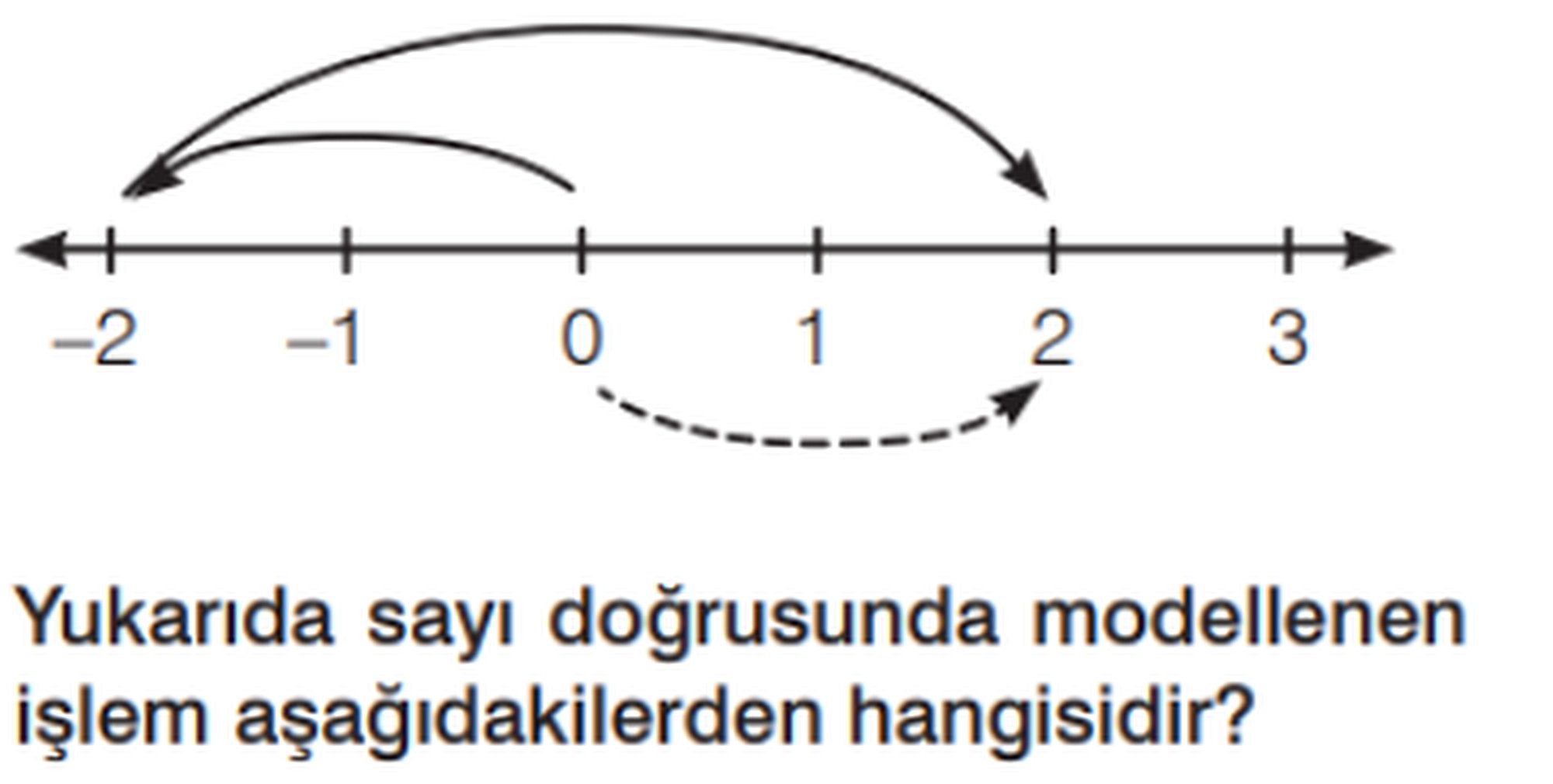 Sayı doğrusunun altındaki kesikli ok işareti ile sağa doğru gösterme ise sayı doğrusunun üzerindeki iki işlemi aslında tek bir işlem şeklinde de yapabileceğimizi göstermiş olmasıdır.