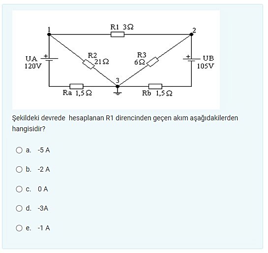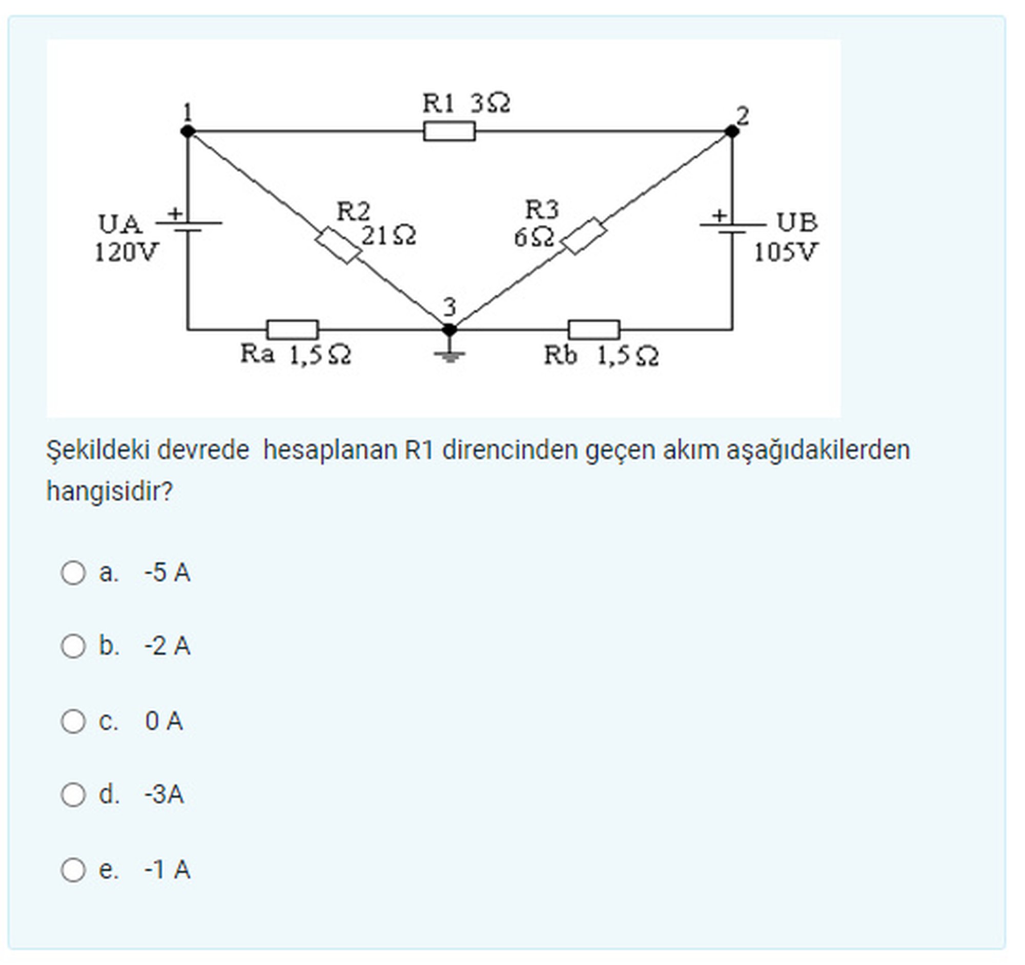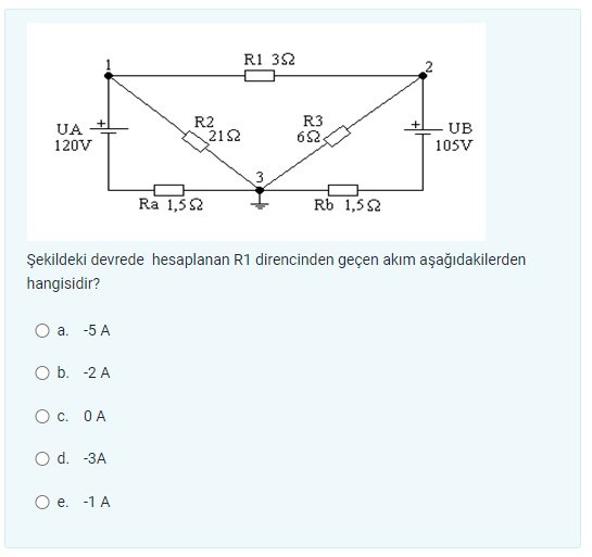 Şekildeki devrede hesaplanan R1 direncinden geçen akım kaçtır?