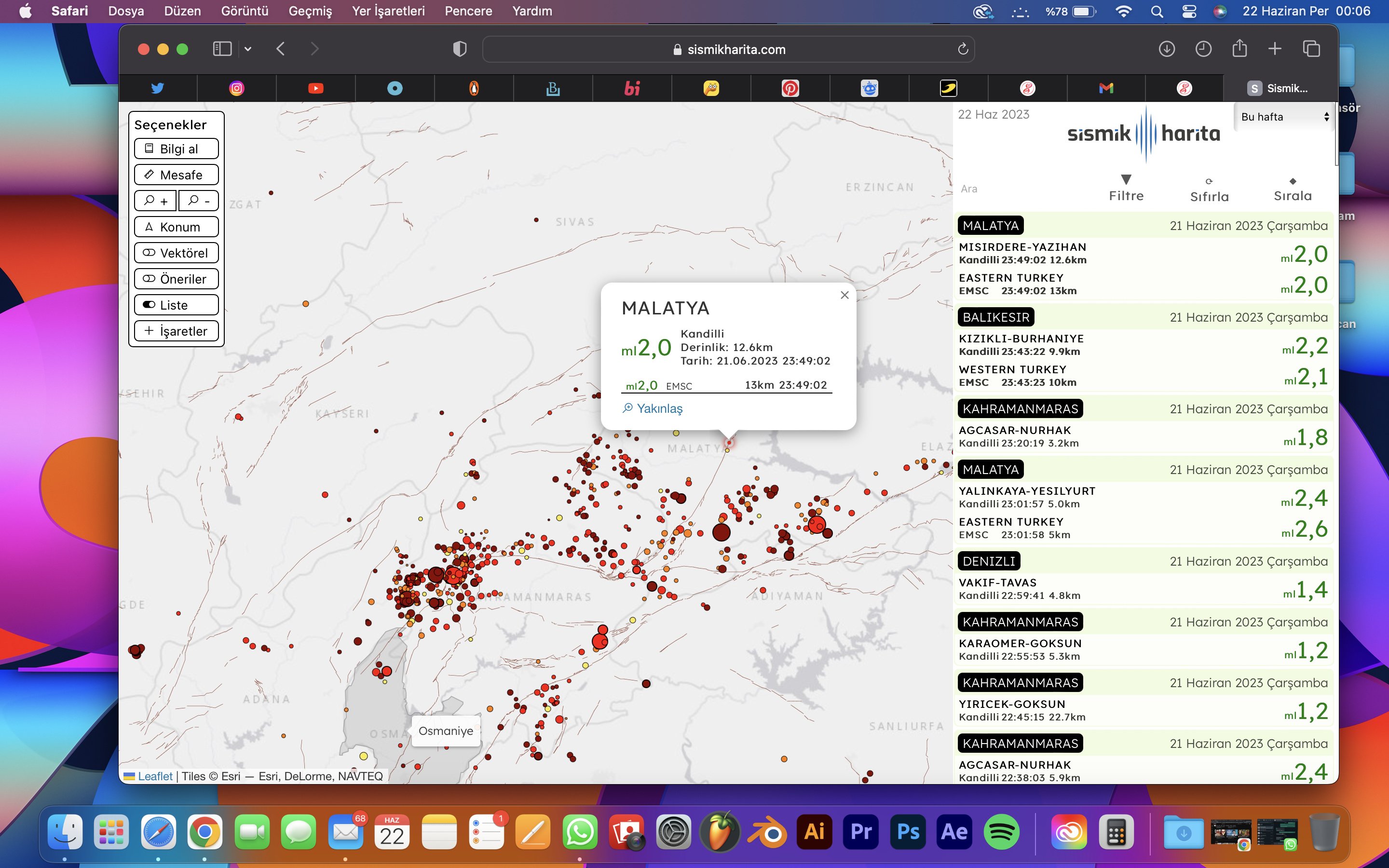 Yukarıdan aşağıya doğru listelenen depremler, güncelden eskiye doğru ilerler. En baştaki deprem kaydı da en güncelidir ve üzerinden henüz 1 saat geçmediyse animasyonla belirtilir.