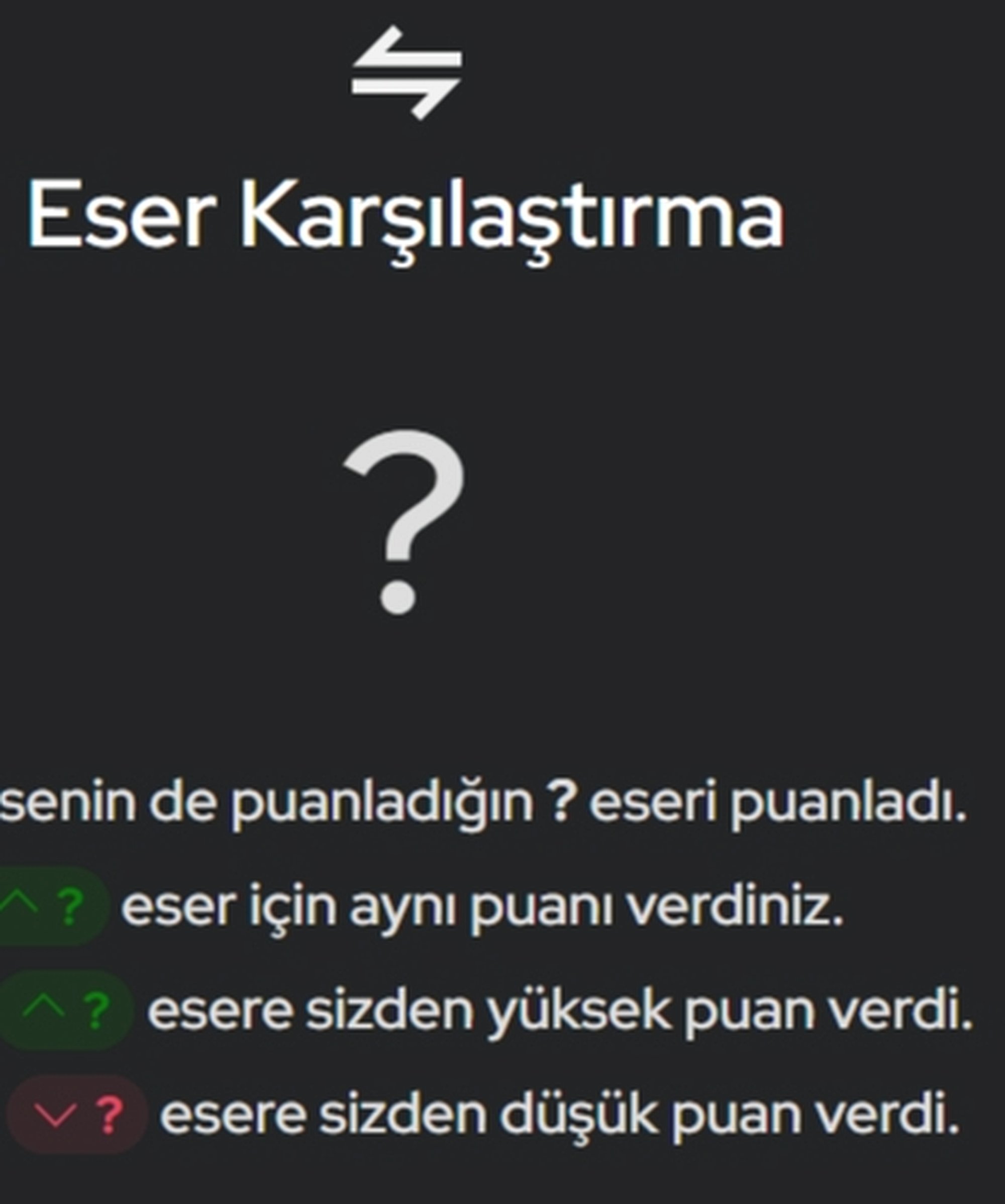 Karşılaştırma yapabilmek için hem senin hemde karşılaştırmayı yapacağın kişinin ayarlardan izin vermesi lazım attığın görsel sayfasında aşağıda bir yazı yazıyor onu okursan anlarsın umarım. İyi günler.