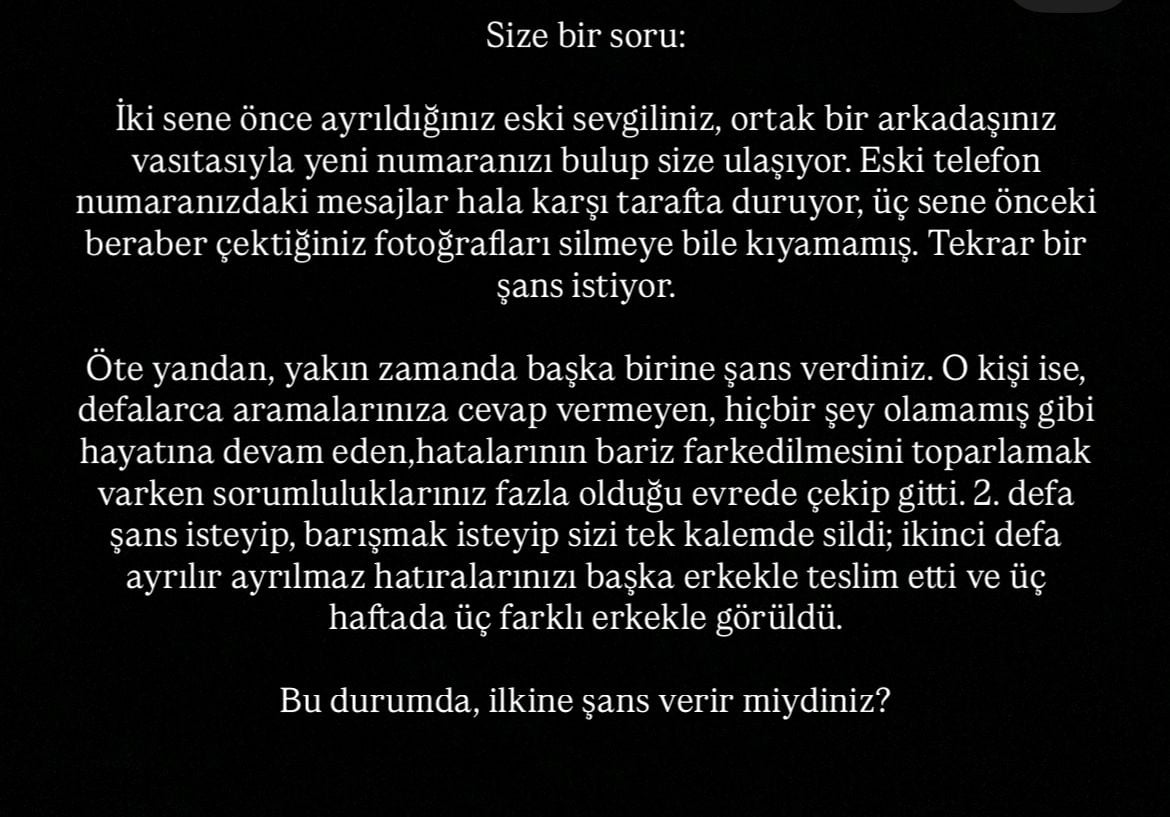 Aklınızdan geçenlerin bu platformda bulunmuyor olabilecek kişilere cevap hakkı doğurmadığından emin olun.