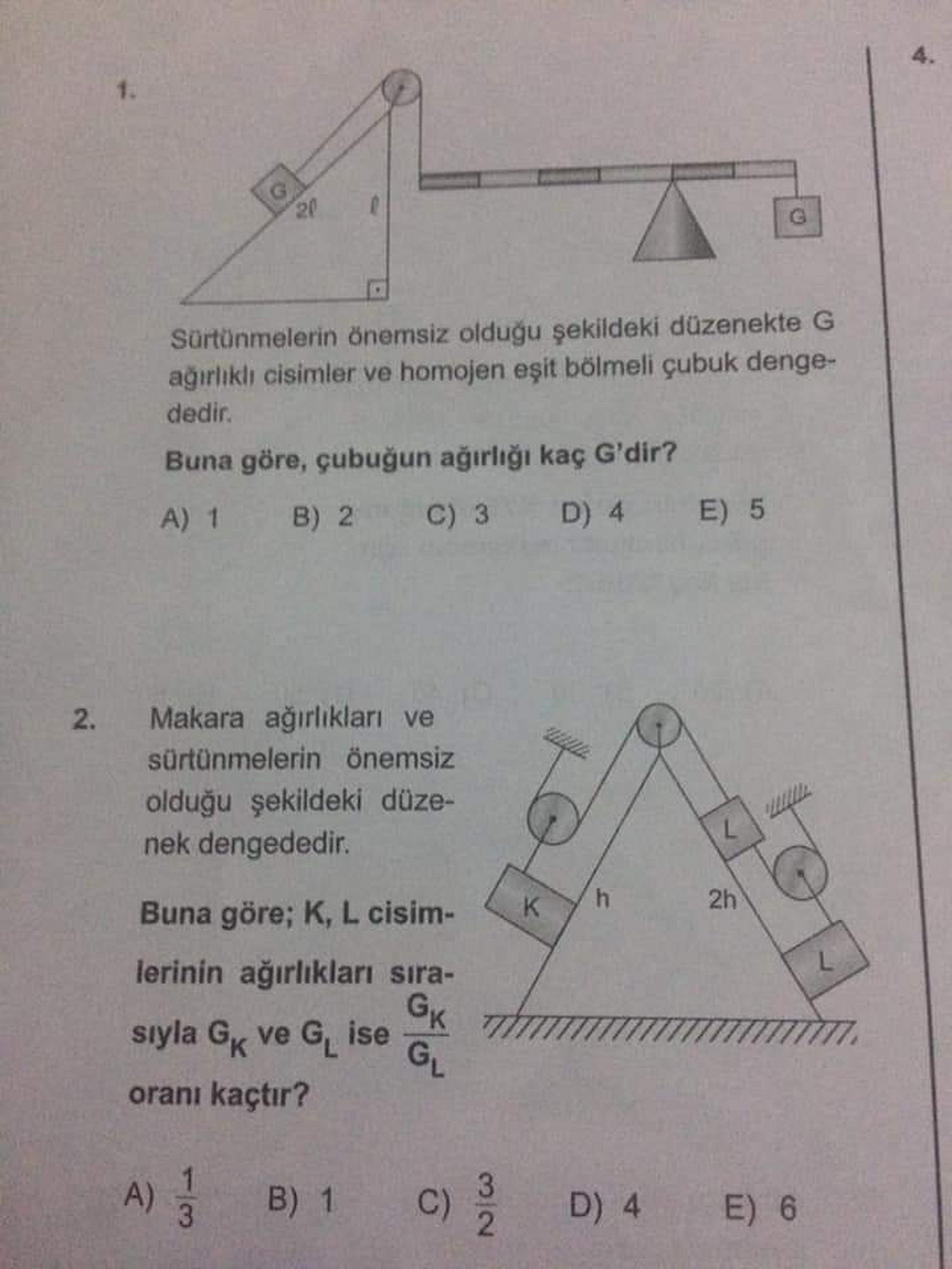 Sorularda G'yi ve GK/GL oranını bulabilir misiniz?