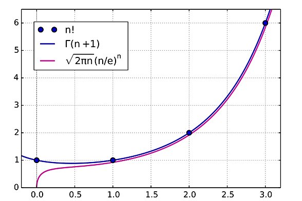 Buradaki doğrudan faktöriyel hesaplayan gama fonksiyonudur. Hakkında buraya bakabilrisiniz. Noktalar ise bildiğimiz normal faktöriyellerdir. Stirling formulune nasıl ulaşıldığını buradan okuyabilirsiniz.