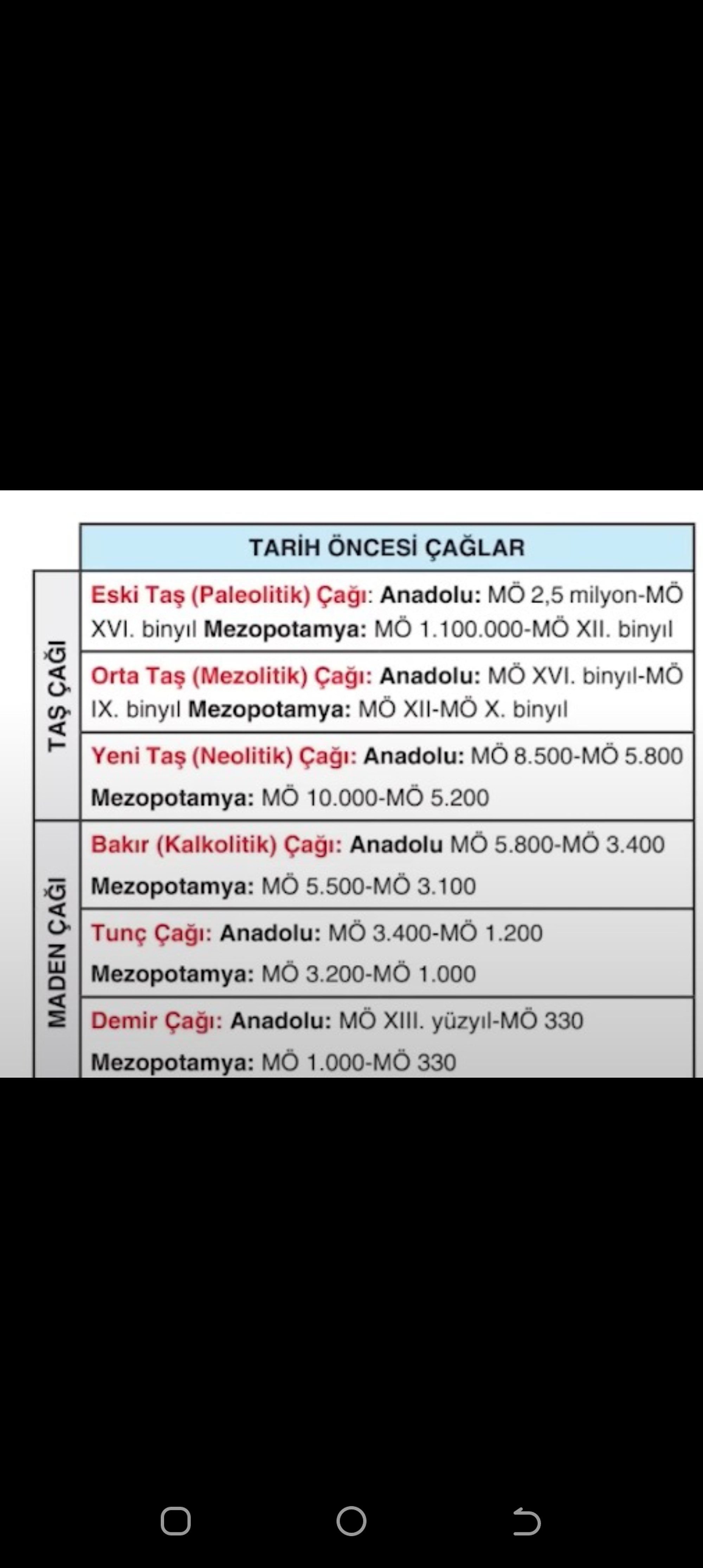 Buraya kadarı her bölge için karanlık çağ. Yazının olmadığı yere ''karanlık çağ'' denir. Elde edilen bilgiler çoğunlukla arkeolojiye dayanır. Yazı varsa tarihi çağlar başlar.