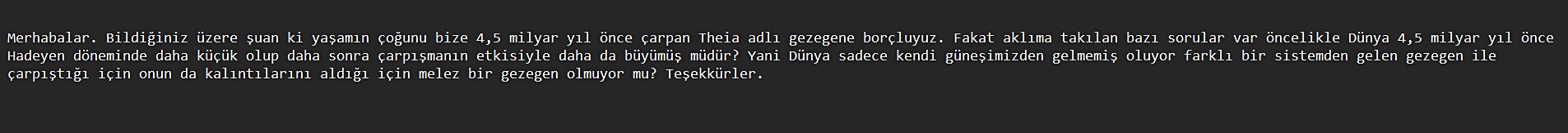 Evrim Ağacı bir bilim platformudur. Dolayısıyla aklınızdan geçen her şeyden ziyade, bilim veya yaşamla ilgili olabilecek düşüncelerinizle ilgileniyoruz.