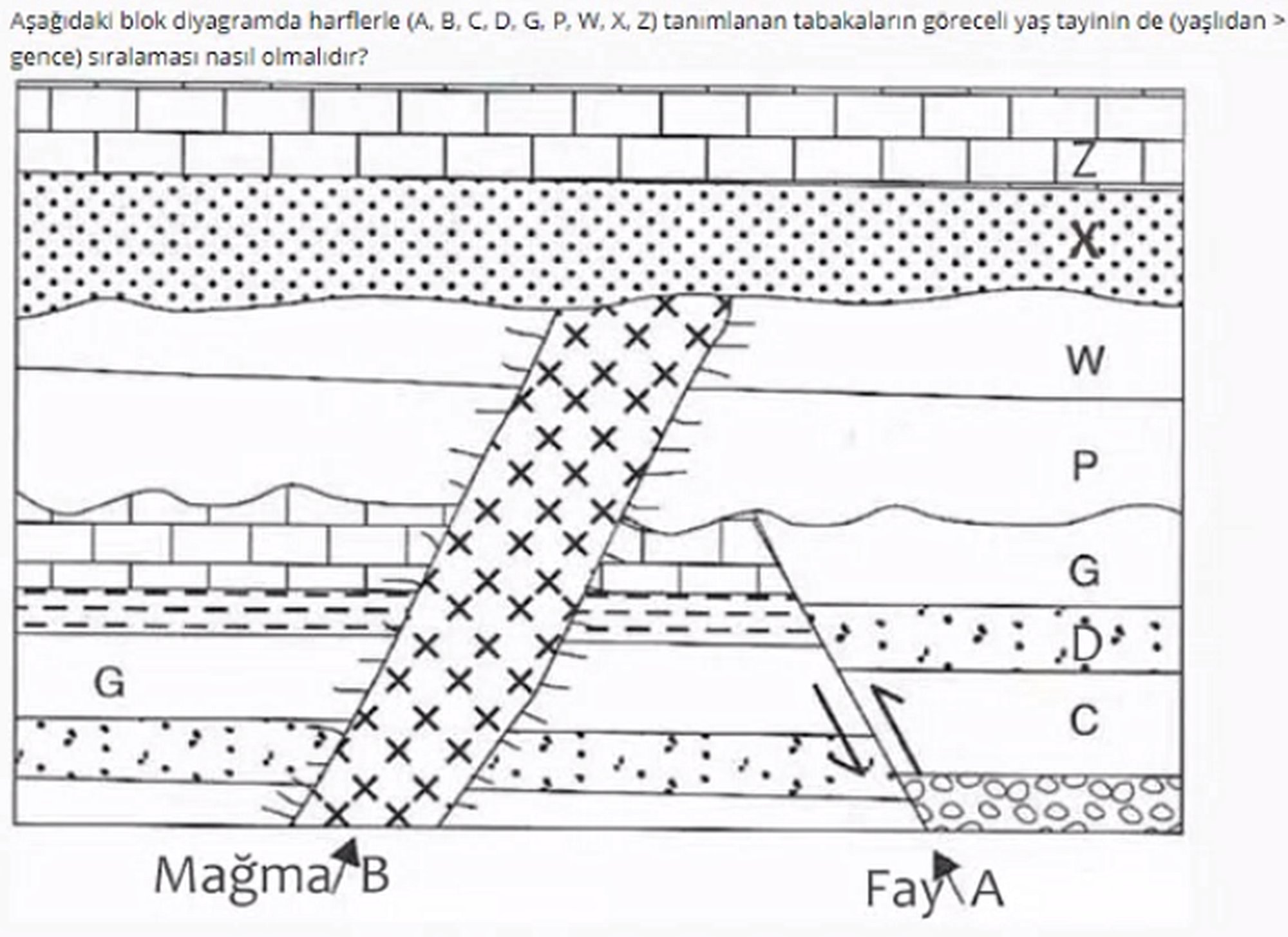 Verilen tabakaların göreceli yaş tayininin sıralaması nedir?