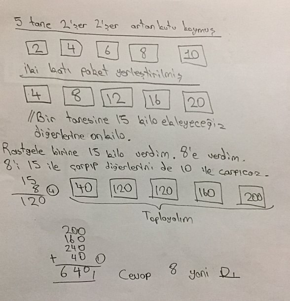Aslında çok kolay bir işlem dört işlem ile ilgili. Rastgele bir kutuya 15 kilo ekleyip diğerlerine 10 kilo ekleyeceksin.