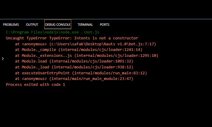 Bu örnekteki gibi kullanılmalı intents bits neler olduğu bilinmiyor ise discord.js adresinden bitlerin ne olarak attandığı bakılabilir. ya da kullanıma göre