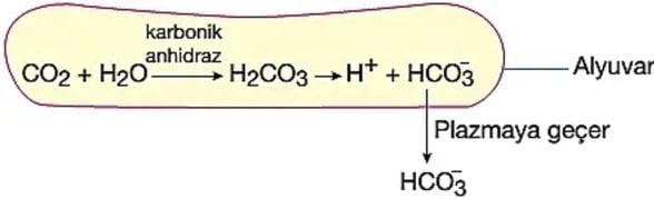 - Kana giren karbon dioksitin %70 kadarı bikarbonat olarak taşınır. Bikarbonat oluşumu tersinir (her iki yönde işleyen) bir tepkimedir.