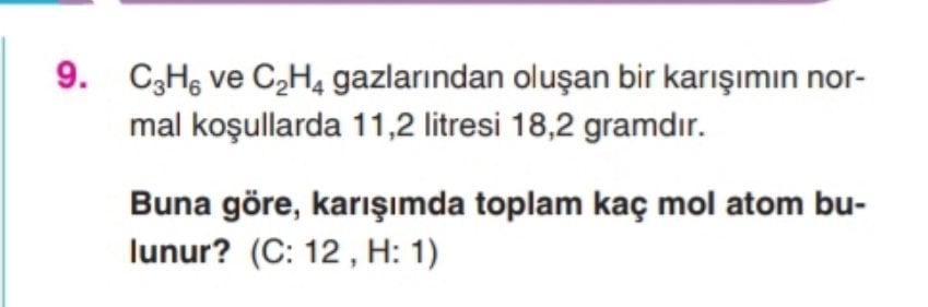 Merhaba, çözüme geçmeden önce şunu bilmek gerekli " MOL " birden fazla yolla bulunabilir : Hacim bilgileri sayesinde , Tanecik sayısı bilgisine göre ve Kütle bilgisine göre... Bu soruda bize verilen veri gram olduğu için yani kütle bilgisi verildiği için şu formül kullanılmalı n (mol)= m(kütle) ÷ Ma (kütle numarası)