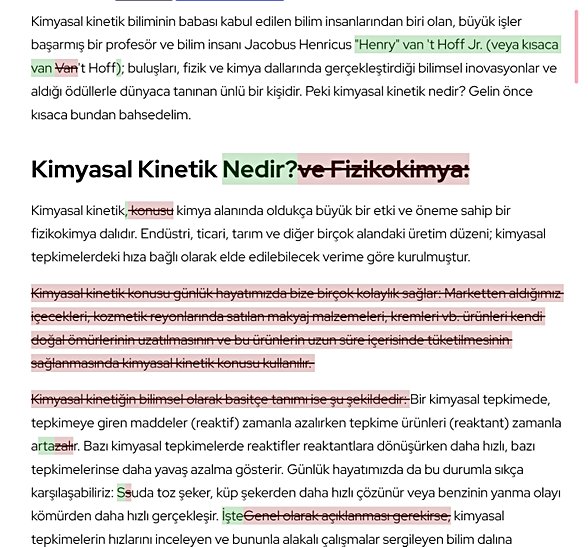 Bu düzeltmeleri dikkatlice inceleyerek ve anlamadığınız noktada Yazılı İçerik Kuralları'yla kıyaslayarak kendinizi geliştirebilirsiniz.